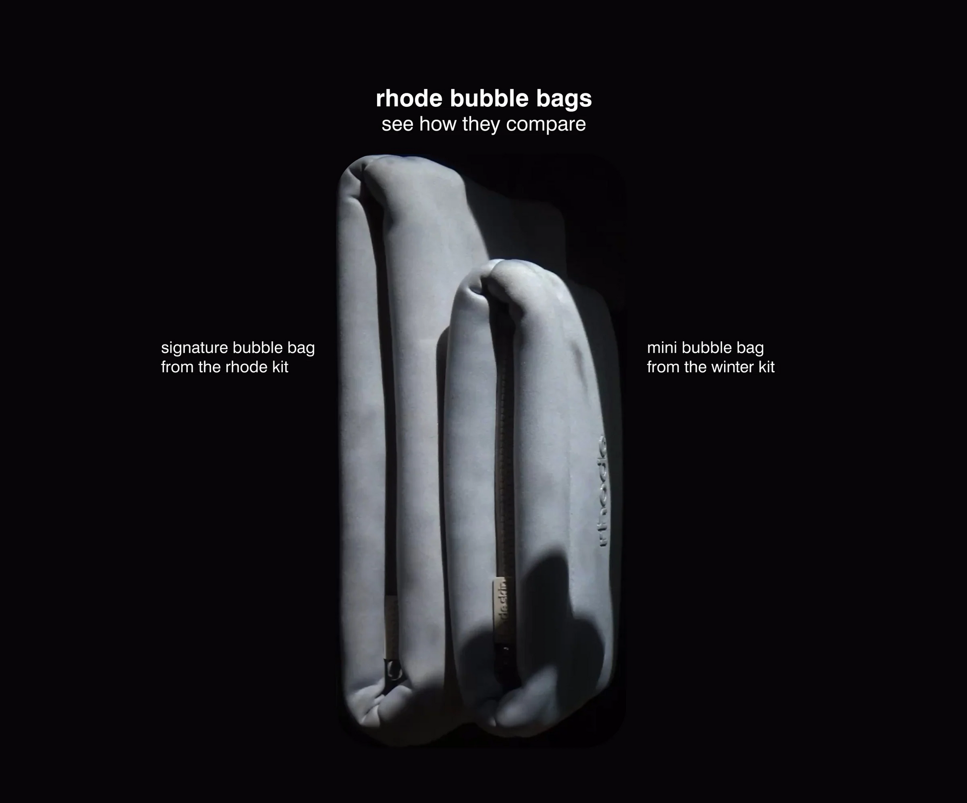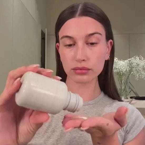The Winter Kit comes bundled in a mini size of our rhode bubble bag. It's a pillowy, grey neoprene bag with jersey lining and an embossed rhode logo. Holds 2-3 big skincare essentials or 5 minis. Size: 9.5" length / 7.5" height.